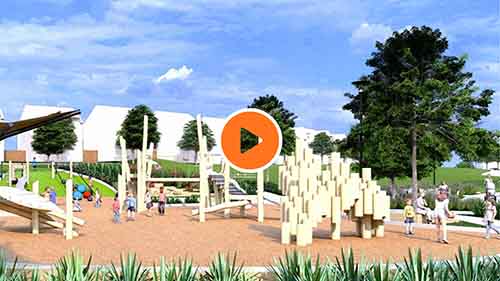 One of the most exciting additions coming to Meraki is the future playground, thoughtfully designed to encourage movement, discovery, and time outdoors. Sculptural climbing elements, open play zones, and nearby shaded gathering places create an environment where children can explore freely while families relax and spend time together.